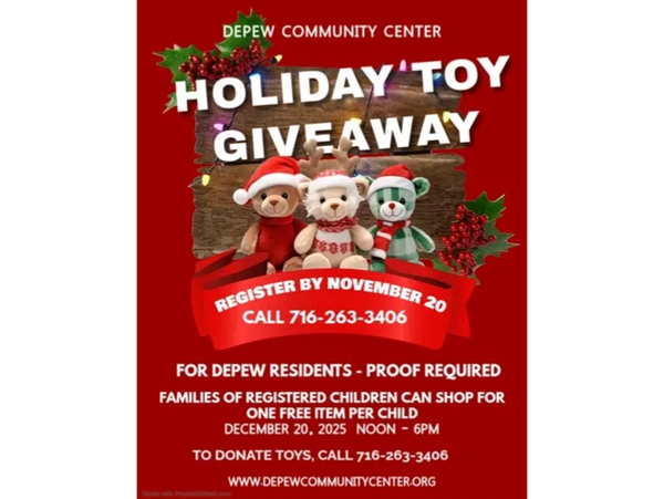 Depew residents can register for the toy giveaway and choose a toy for each of their children on December 20.